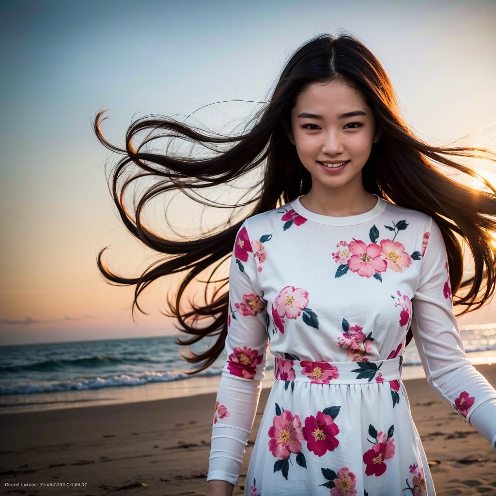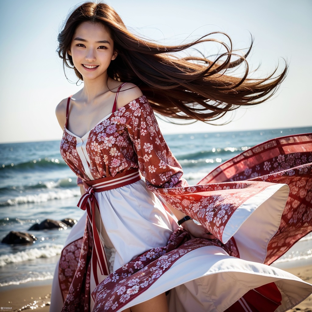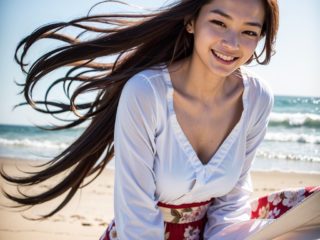 AIで生成されたモデルは目の覚めるような美少女で、目も神も鼻も口も髪の毛も細部が細かく描かれている。